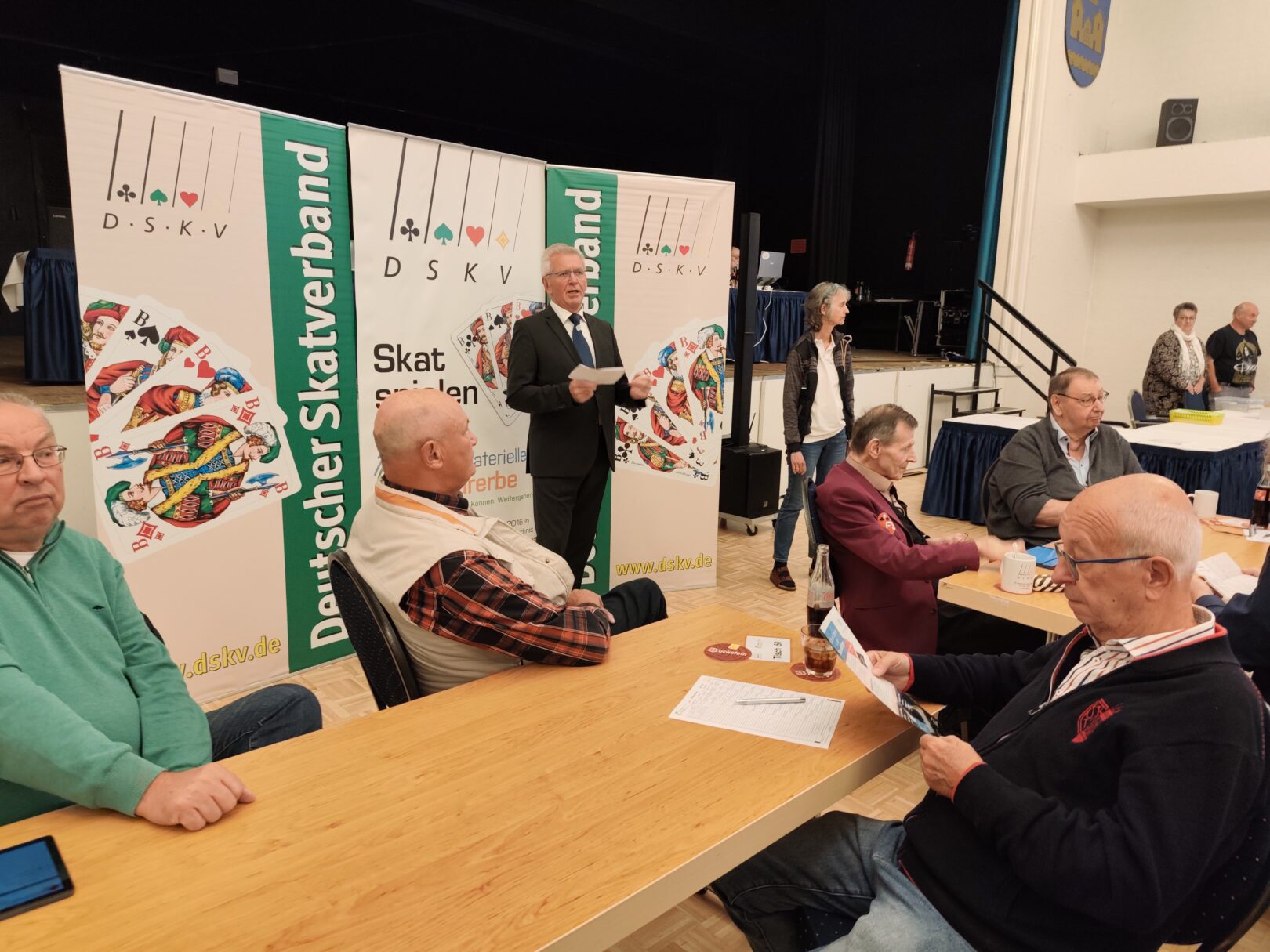 am Samstag, den 04.10.2025, pünktlich um 13:00 Uhr den 11. Seniorenpokal im Avalon Hotelpark Königshof in Königslutter. Anschließend gab die Spielleiterin Marion Schindhelm noch einige Hinweise zum Ablauf der Veranstaltung und gab dann das Blatt frei.